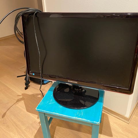 Samsung ED40C skjerm med en skjermstørrelse på 40 tommer. Skjermen har HDMI-tilkobling og er beregnet for fargedisplay. Energimerking B med et strømforbruk på 110 watt. Modellen er produsert i Sverige i oktober 2013.