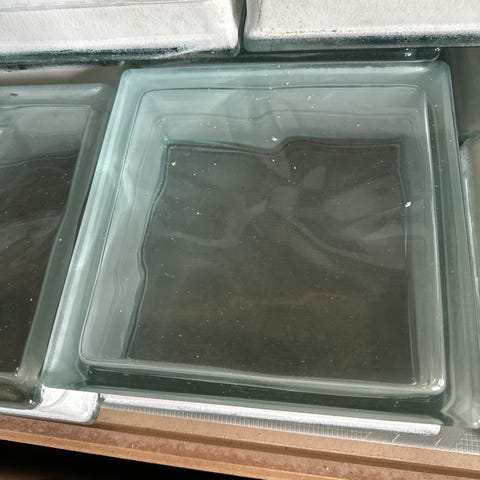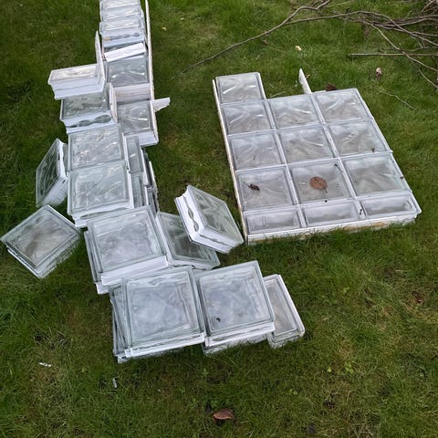 Glassbyggerstein brukt som dusjvegger 10,- pr stk