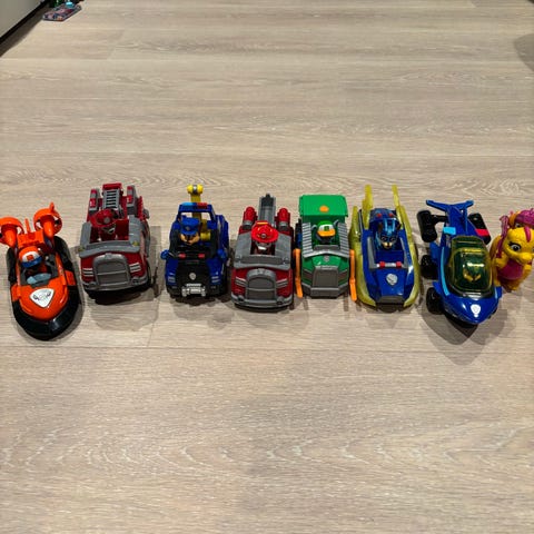 Paw Patrol lekebiler sett bestående av to kjøretøy. Inkluderer figurer som kan plasseres i bilene.