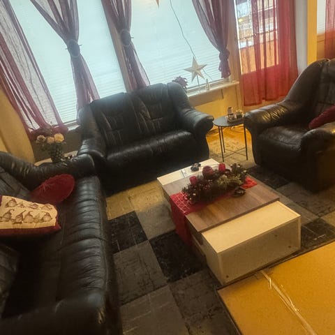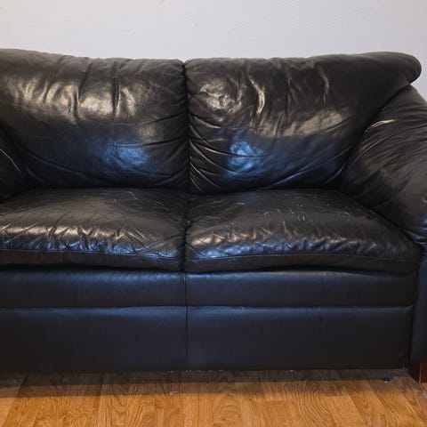 Pent brukt skinnsofa gis bort ved henting.