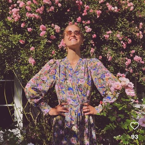 Pen kjole fra Selected lys bunnfarge med blomsterprint.Pent og lite brukt,korte ermer.