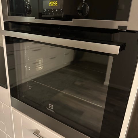 Siemens innebygd ovn med varmluftfunksjon i rustfritt stål. Ovnen har et frontpanel med knapper og display for enkel styring. Egnet for montering i kjøkkeninnredning.