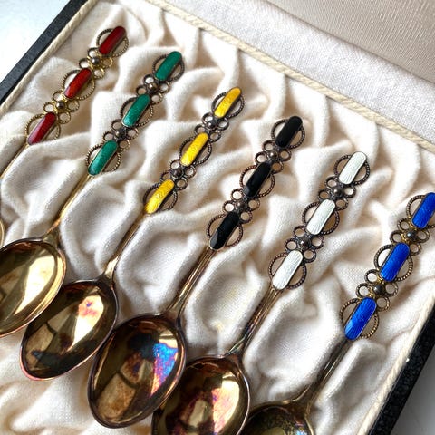 Norsk Sølv og Emalje 925s Mesterstemplet Hestenes mokkaskjeer