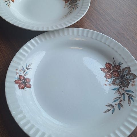 Ikke mye brukt. 8 stk frokosttallerkener og 6 middagstallerkener