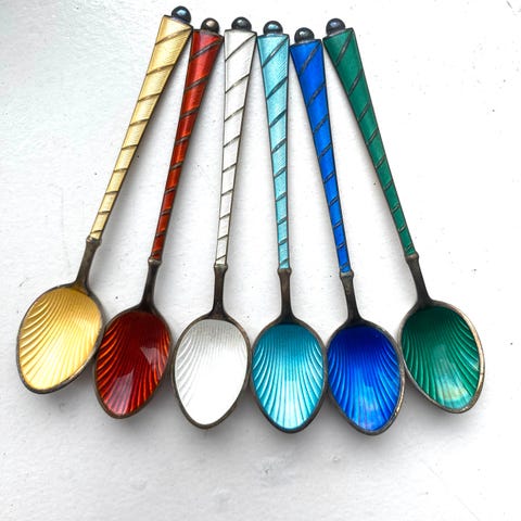 Norsk sølv og emalje Mesterstemplet Arne Nordlie 925s mokkaskjeer