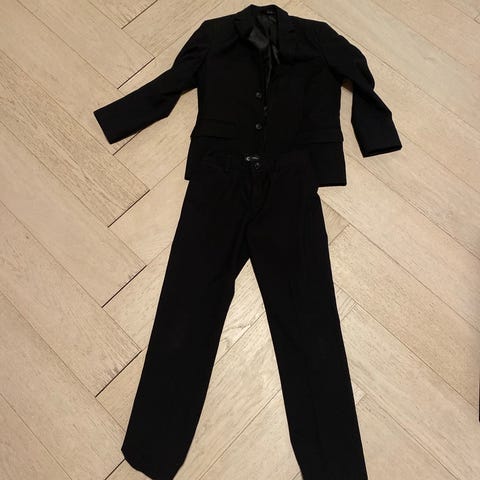 Kjempefin sort dress til gutt, bukse str. 134, blazer str. 140