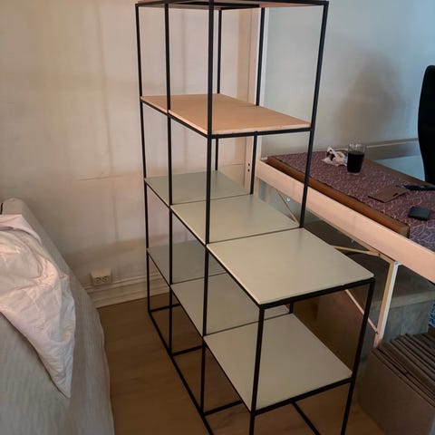 Hyllene perfekt til å stå i bod. De passer også fint på stua eller andre steder. Noen riper/bruksmerker i hylleplatene.