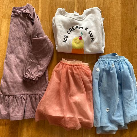 Mini klespakke. Utrolig fint sett fra Lindex, str. 110. Kjole og tights med kanin og blomster. Finner ingen anmerk. Tightsen har innstramming og er litt tykkere.