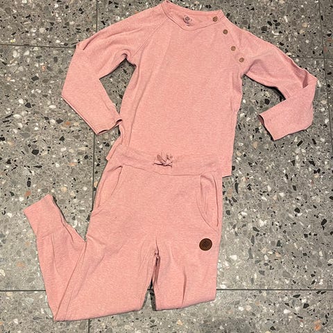To pent brukte joggesett fra Gullkorn, Vilvette. Veldig gode og myke! Kan ikke finne noen anmerk., annet enn at det lilla settet er litt lysere på knær, og mulig litt på albuer (lite).