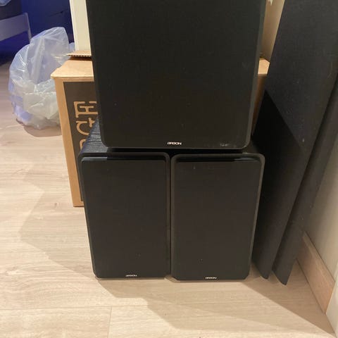 Sub utgang, left/right inn samt 3,5mm input. Volumknått i front