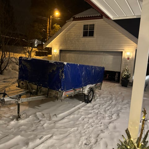 Gaupen A1325T tipphenger med Jaxal kapell, klargjort for snøscooter transport