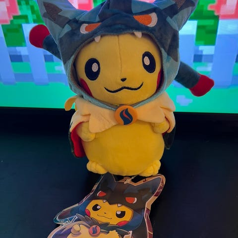 Gaveidé? 🎁 Utrolig søt og myk Pikachu bamse, kledd ut som Garchomp 🐉🤩