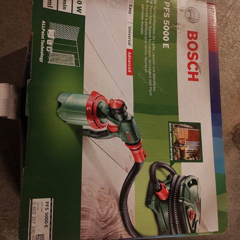 Bosch PFS 5000 E sprøytemaling med en effekt på 1200 watt. Egnet for maling av større flater med jevn påføring. Produktet leveres i original emballasje.