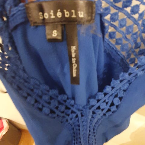 Blondetopp/tunika i royal blå farge fra by Sofie Rasmussen, str XL/44. Pent brukt, men en av trådene er løs ( se nest siste bilde).