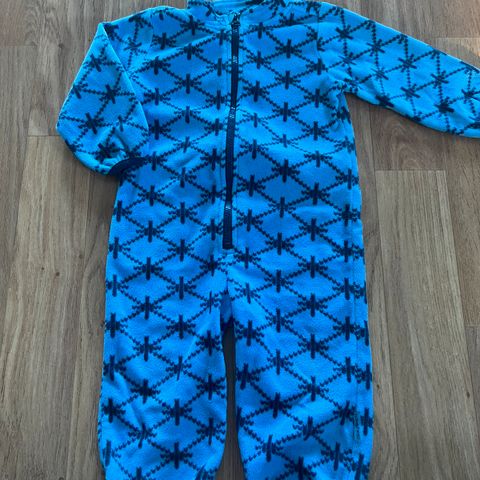 Selger Fleecedress med hette, fotposer, håndposer str 80 Lite og pent brukt etter ett barn. Fleecedressen kjøpt ny av oss og brukt kun av oss.