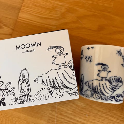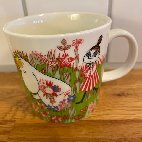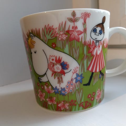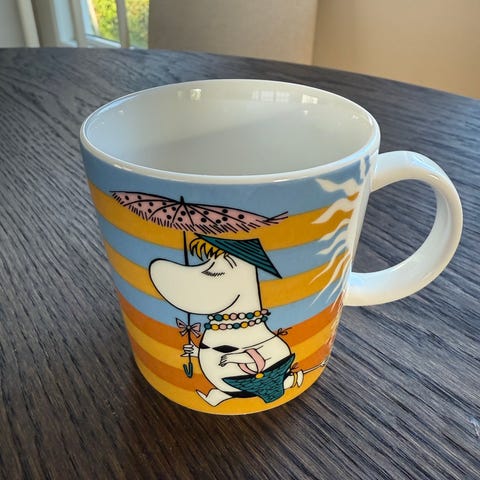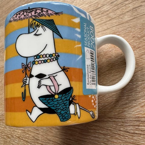 Mummikopp på stranden. Designer Tove Slotte. Strørrelse 0,3 liter. Koppen selges ikke mer.