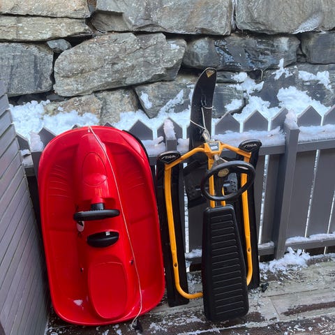 Gøy rattakebrett hvor alt virker som det skal. Utstyrt med bremser og tau til å dra den. Hentes i Åsane/Bergen