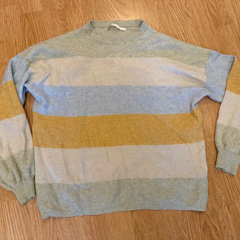 ONLY Genser i flerfarget design, størrelse M, laget av polyester. Genseren har et mønster med blomster og er beregnet for kvinner. Den er relativt stor i størrelsen, og kan også brukes av L. Litt lenger bak enn foran.