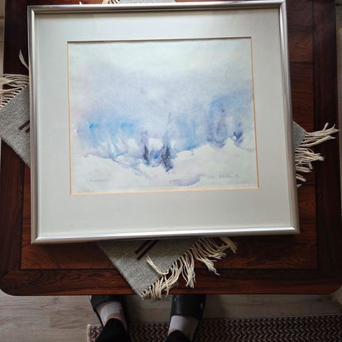 Pen ramme og passepartout med motiv av Leo Schikora. "Vintermorgen"