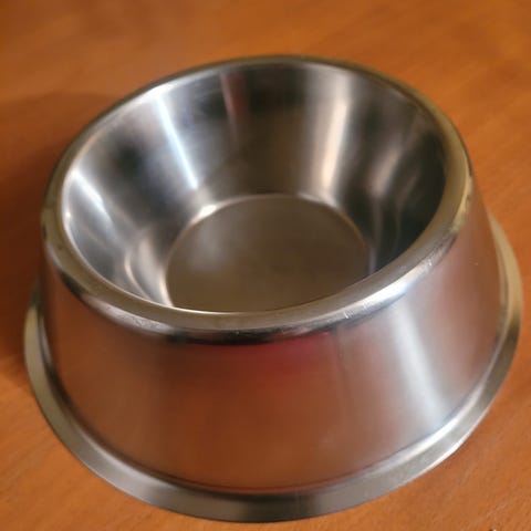 Hundeskål med innvendig bolle i rustfritt stål og ytre del i svart plast. Skålen kan tas fra hverandre for enkel rengjøring.