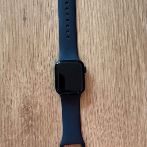 Apple Watch Series 4 smartklokke med grå reim. Inkluderer ekstra reim i beige og ladekabel med magnetisk lader. Uten G