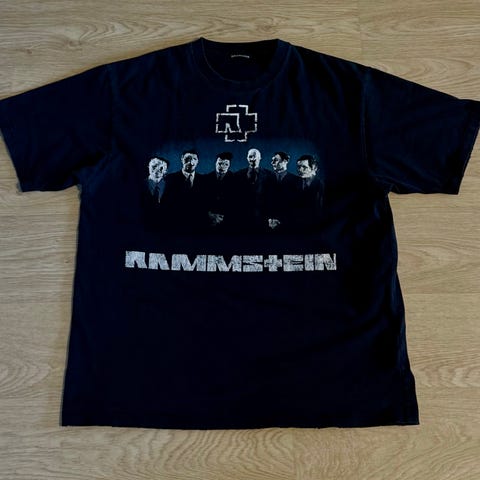 Balenciaga x Rammstein tee, limited edition size L. Heavyweight portugisisk cotton, riktig boxy fit og fet frontprint + ton‑i‑ton Balenciaga brodert bak. Brukt med respekt, ingen skader – perfekt for deg som vil ha arkiv‑piece.