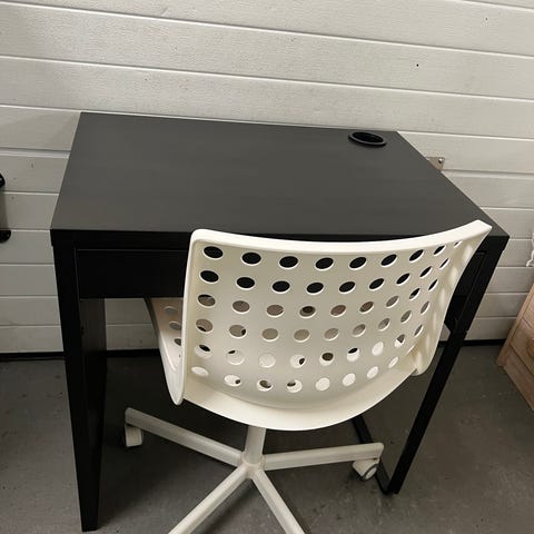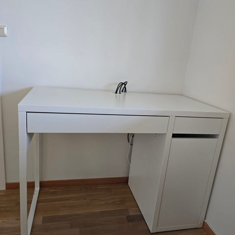 Skrivebordet er brukt kun i en kort periode, men det er en ripe i det. Ellers pent.
