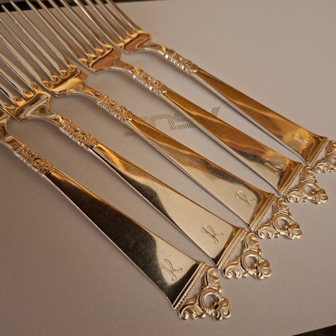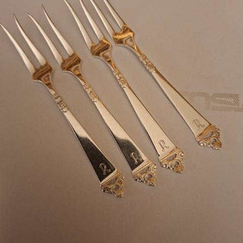 Selger også tilhørende sett med 10 stk kakegafler og kaffeskjeer, se andre annonser.