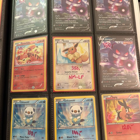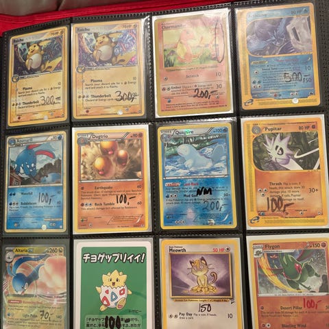 Hei, jeg selger sjeldne Pokemon kort. Prisen finner du på sleeven på kortene
