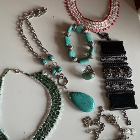 Bijouxteri. Hals kjeder i forskjellige farger og matetiale