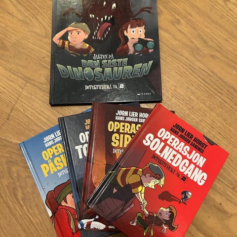Johan Lier Horst Detektivbyrå nr2, barnebøker med titlene Tyven-Tyven, Jungelens Dronning og Slottets Hemmelighet..