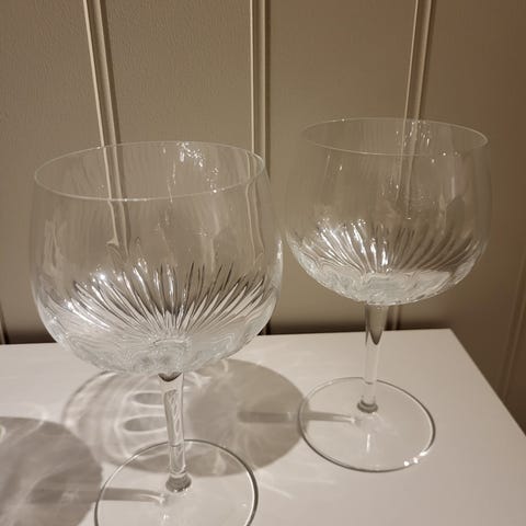 4 Gin glass nesten ikke brukt og 3 ulik vinglass i klart glass.