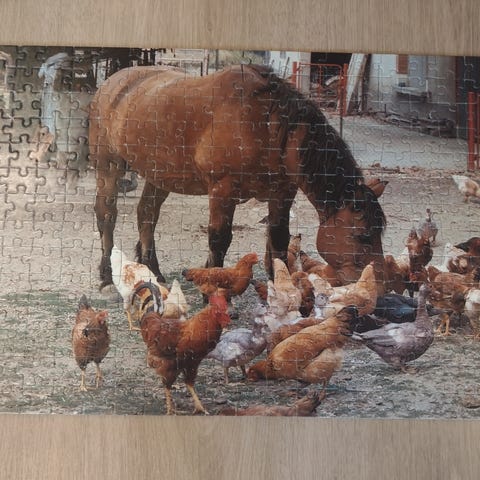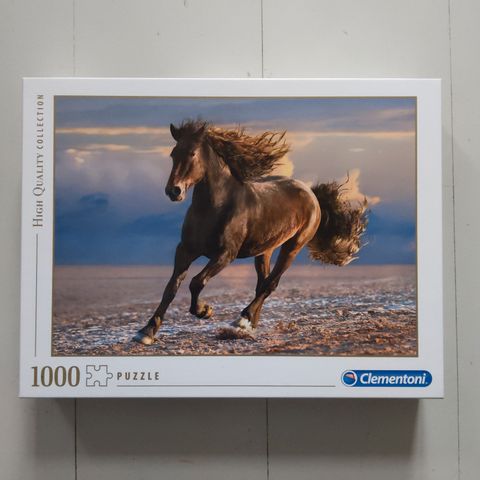 Pineo puslespill bestående av to sett med 48 brikker hver, med motiv av hester. Egnet for barn fra 5 år og oppover.
