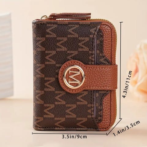 Kompakt, todelte myntpung | med bokstavmønster, lett å rengjøre, praktisk å bære.