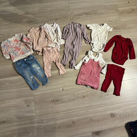 Merke er fra Cubus ,H&M ,reflex, newbie, kappahal flerfarget jente klær i størrelse 74. Inkluderer ulike plagg som kjoler, bukser og gensere i forskjellige farger og materialer, egnet for små jenter.alt er pent brukt , dyrfrit og røykfritt hjem
