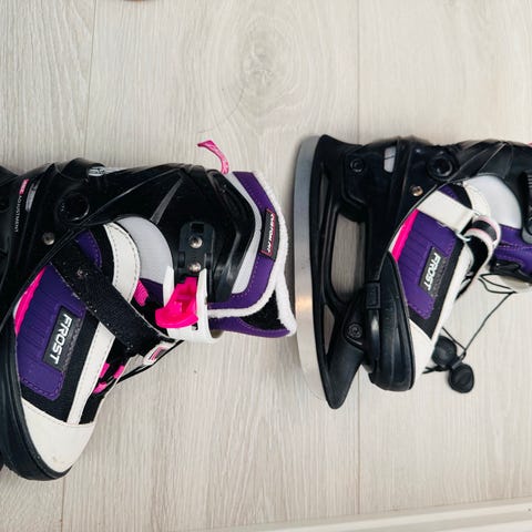 Frost Ishockey skøyter for barn i størrelse 29-32. Skøytene har justerbar størrelse for bedre passform.
