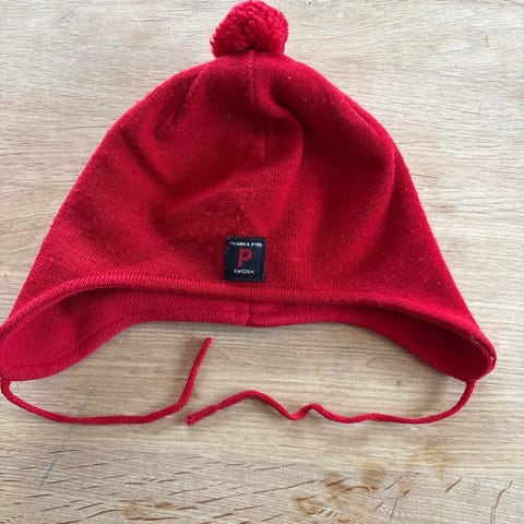 Selger Polarn O. Pyret lue i flerfarget design laget av merinoull. Passer for barn i størrelse 40/42 (0-4 måneder) og er unisex. Luen har knyting under haken for god passform og varme.