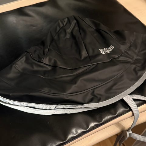 Finsk Produsert fra Nokias Bedrift, Nanso. Fin regnhatt med øre beskyttelse og lang snor med fin strammer. Og fin brem rundt hele veien, se bildene