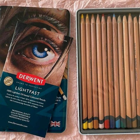Så og si ubrukt Derwent Artists fargeblyanter sett med 23 farger, for det mangler en.
