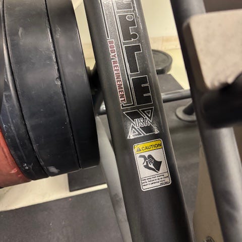 Benpress Pivot 800 med ca. 170 kg vektskiver.