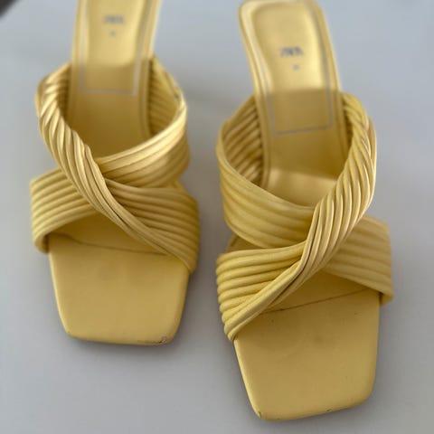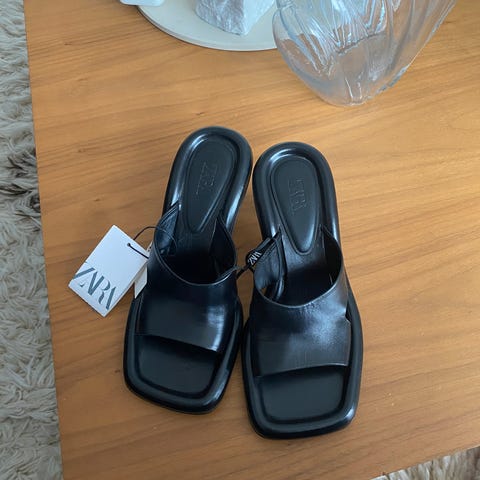 Zara Basic Collection sandaler i størrelse 39, farge svart. Laget med materialer som gir et klassisk og enkelt design. Passer for daglig bruk.