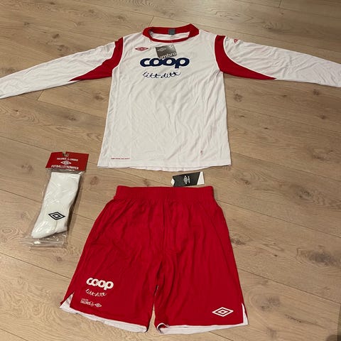 Følger med en hvit shorts fra umbro, ikke original, med en grønskeflekk.