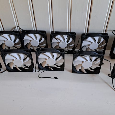Fractal Design Tilleggsutstyr PC-vifter i svart med hvite vifteblader. Passer som ekstra kjøling for datamaskiner. Fire vifter i forskjellige størrelser, alle med elektrisk tilkobling for montering i PC-kabinett.