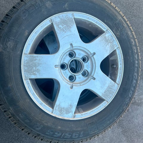 Stått lagret på felg i 1,5 år i bod og garasje etter vraking av eldre stasjonsvogn.