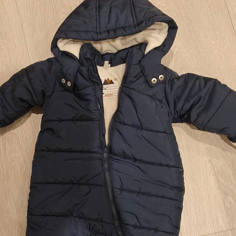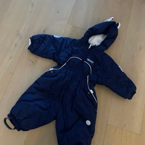 Selger en vinterdress for barn i størrelse 86. Dressen er blå. Den er myk og varm innvendig som holder barnet godt og varmt på kalde dager.