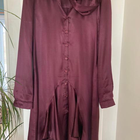 Elegant kjole med én skulder og rysjedetaljer – perfekt til fest og nyttår! Stoffet har en lekker shimmer-effekt som gir et eksklusivt preg.