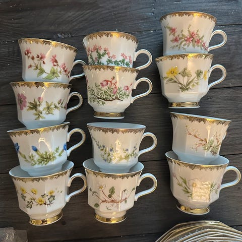 Flotte ulike kopper-tynt porselen.Bavari,Rosenthal,Arabia mm.fin stand.Arvet alle disse,så litt usikker på alder/land ol.Fine er de-bud