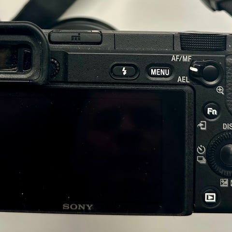 Sony Alpha 6300 speilløst kamera med 18-50mm f/2.8 DC objektiv. Kameraet har en 4K videoopptaksfunksjon og en justerbar skjerm. Objektivet dekker et zoomområde fra 18mm til 50mm, egnet for ulike fotograferingssituasjoner.