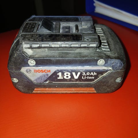 Bosch 18V 6.0Ah Li-ion batteri for bruk med kompatible elektriske verktøy. Batteriet gir 18 volt spenning og har en kapasitet på 5.0 ampere-timer.