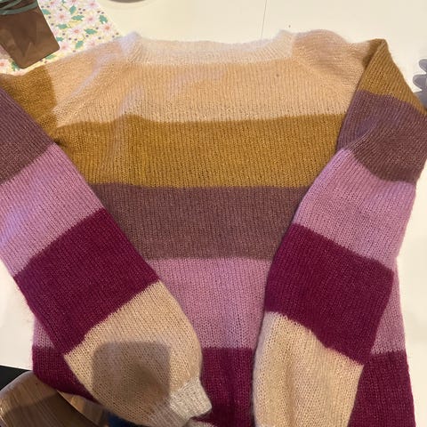 Fin og lett strikket genser, ikke ull, klør ikke.